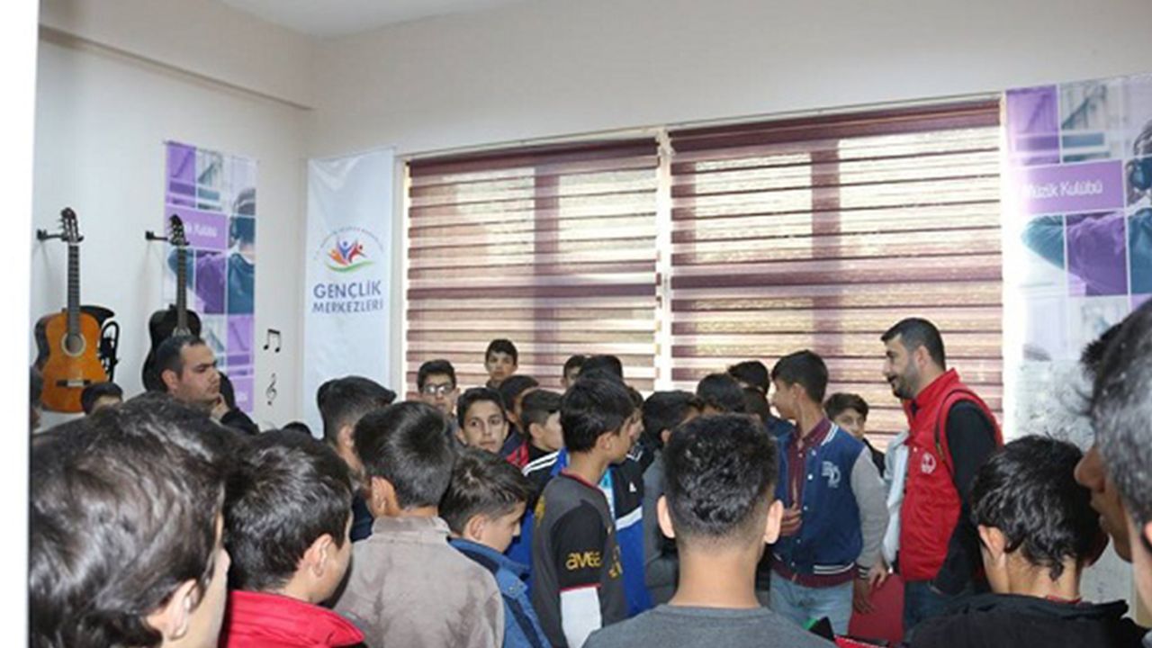 Liderleri tarafından karşılanan ve Gençlik Merkezini gezen öğrenciler, merek