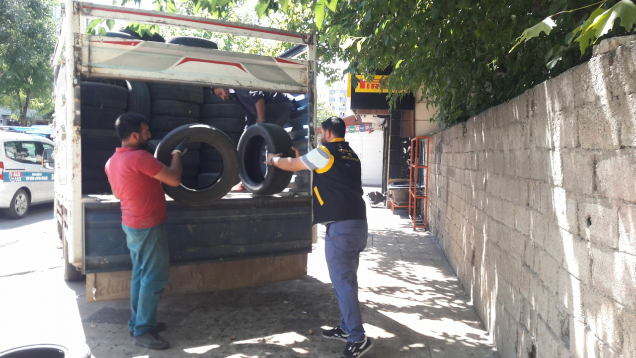 Müdürlüğü ekipleri, şehrimizde ömürleri tamamlanmış lastiklerin tümünün geri