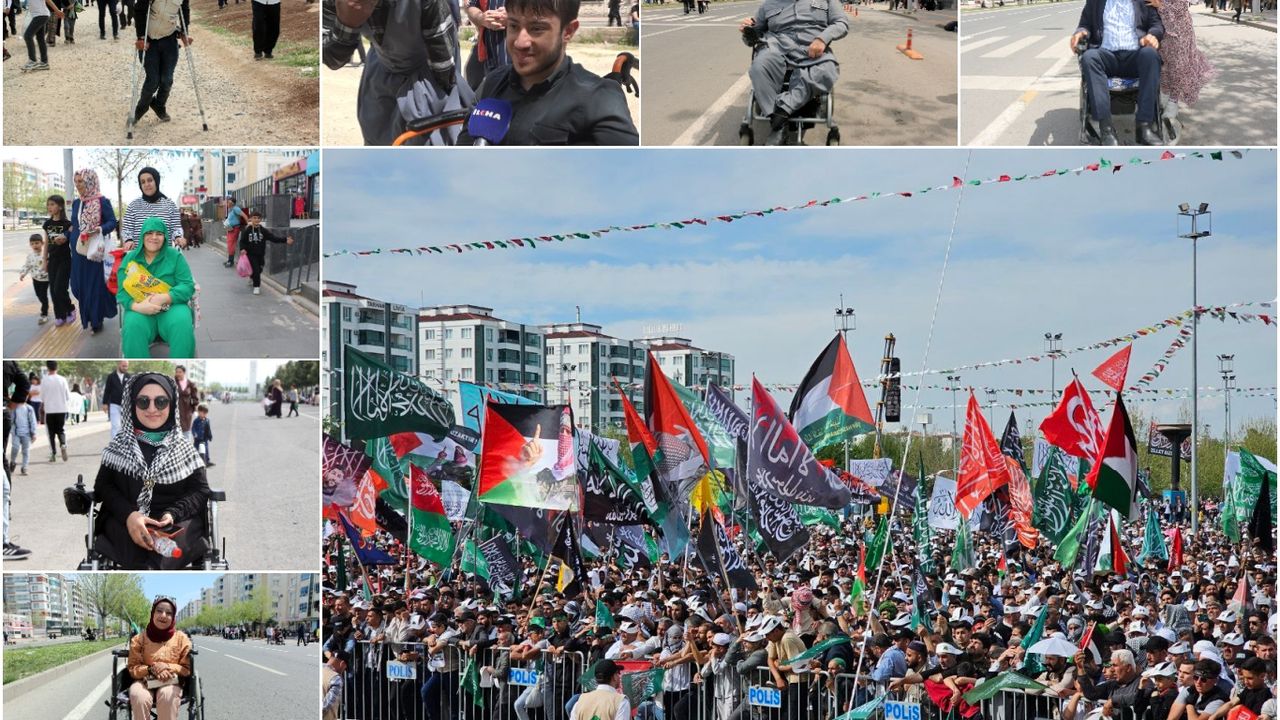 Diyarbakır'da Peygamber Sevdalıları Vakfı tarafından gerçekleştirilen "Direniş Önderi Hazreti Muhammed" temalı Mevlid-i Nebi etkinliğinde engel tanımayarak zorlukları aşarak gelen engelli bireyler Muhammedi sevdayla beraber Filistin davasına olan bağlılığını ifade ederken sarf edilen cümleler insanlığın düştüğü acziyeti gözler önüne serdi.