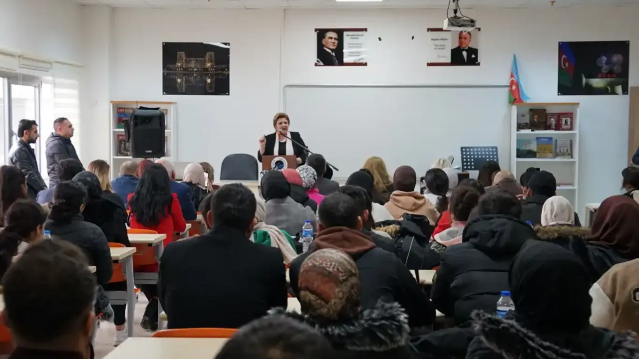 Sınıfında gerçekleşen konferansa, Rektör Prof. Dr. İdris Demir, Azerbaycan’dan