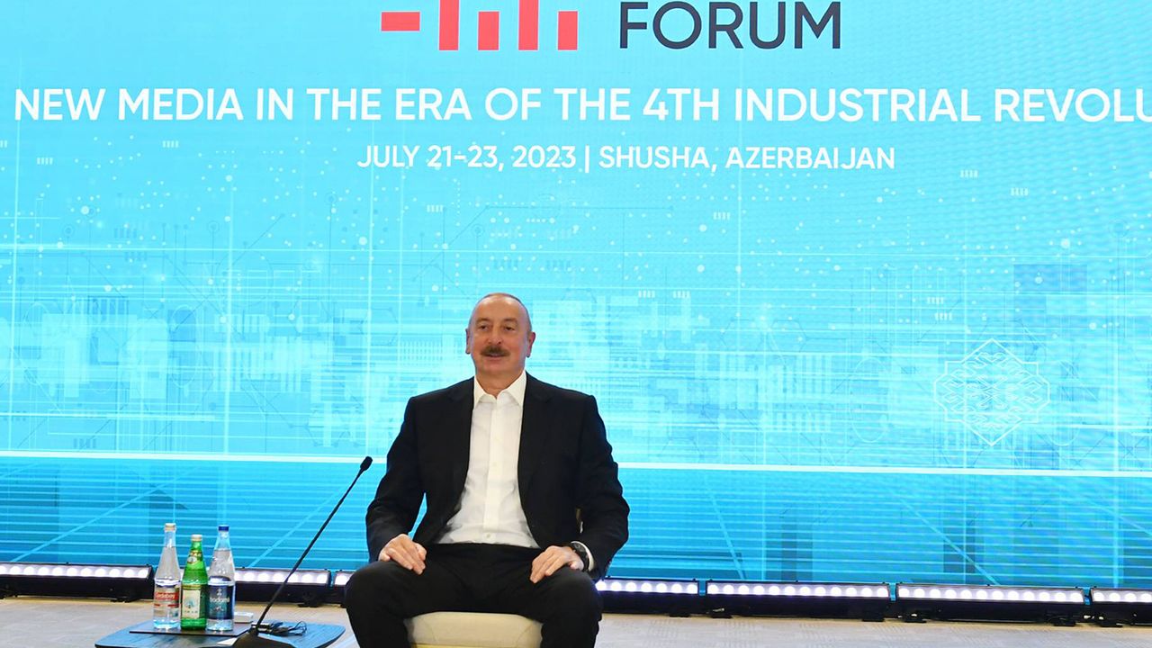 Azerbaycan Cumhurbaşkanı İlham Aliyev, 3. Şuşa Global Media Forumu'nun katılımcılarıyla Hankendi şehrinde bir araya gelerek, açıklamalarda bulundu.