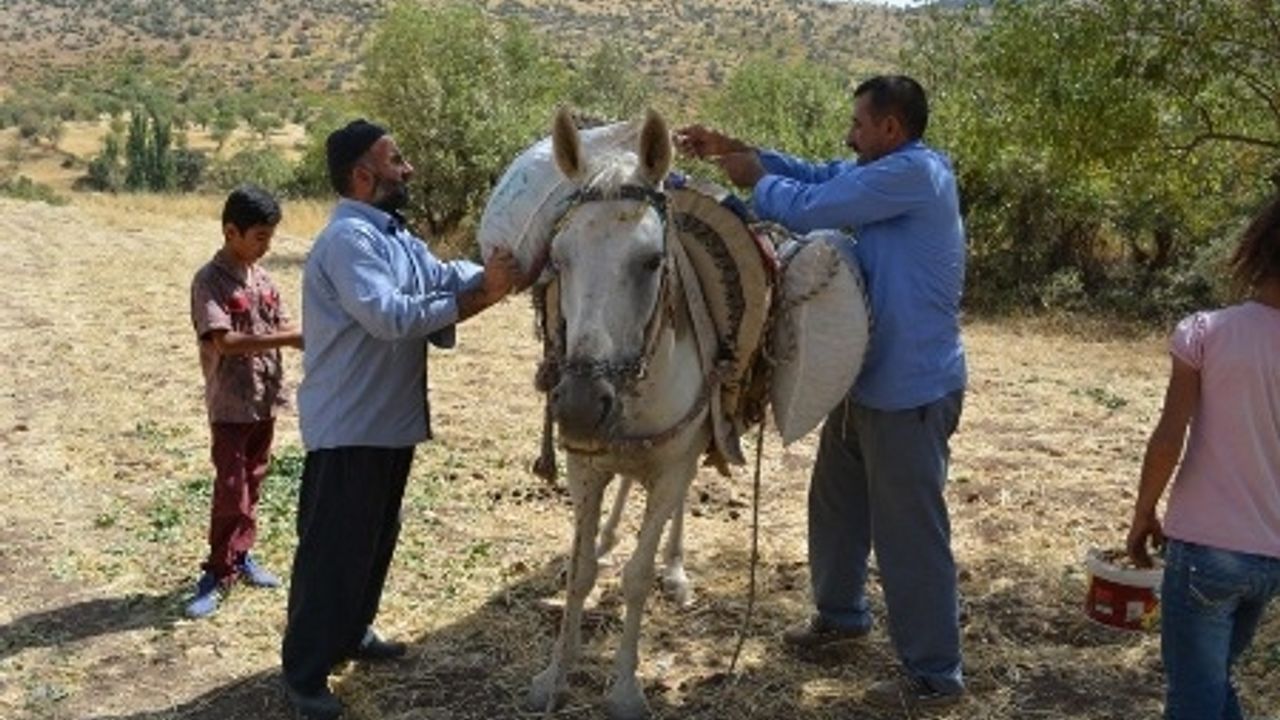 Aile fertleriyle ağaçlardaki bademleri toplamaya çalıştıklarını belirten Altun, 'Normalde badem hasadı ağustos ortasında başlayıp eylüle kadar devam ediyor. Bademler ağaçtan düşmeden önce toplamaya başlıyoruz. Badem toplamak için çocuklarımızla beraber ağaçların altına serdiğimiz brandaların üstüne bademleri uzun sopalarla döküyoruz. Ardından çuvallara doldurarak eve götürüyoruz. Akşam tüm aile ferleriyle beraber bademlerin üstündeki yeşil kabukları çıkarıyoruz. Yeşil kabuklarını güneşte kuruttuktan sonra kışın hayvanlarımıza yediriyoruz. Topladığımız bademleri de güneşte kuruttuktan sonra çuvallara koyup satmaya hazır hale getiriyoruz.' dedi.