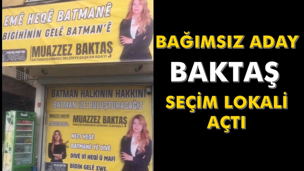 Uzun süredir Ankara'da inşaat alanında faaliyet gösteren iş kadını Muazzez Baktaş seçim çalışmalarını yürütmek ve koordinasyonu sağlamak için Dörtyol kavşağında Gazioğulları Plaza karşısında seçim lokalinin açılışını gerçekleştirdi.Sosyal medya hesaplarından uzun bir süre önce duyurduğu üzere Batman belediye başkanlığı için aday olan İş kadını Muazzez Baktaş resmi adaylık başvurusunu daha önce yapmıştı. YSK'nın bildirdiği Batman belediye başkan adayları listesindeki iki bağımsız adaydan biri olan Muazzez Baktaş seçim çalışmalarını diğer başkan adaylarını ziyaret ederek başlatmıştı.