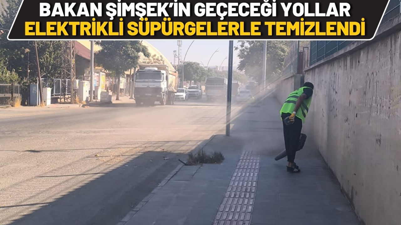 Bakan Şimşek’in geçiş güzergâhında yer alan cadde ve kaldırımlarda belediye ekipleri temizlik çalışması başlattı. Özellikle kaldırımlarda biriken tozlar, elektrikli süpürgeler yardımıyla temizlenerek alan pırıl pırıl hale getirildi.
