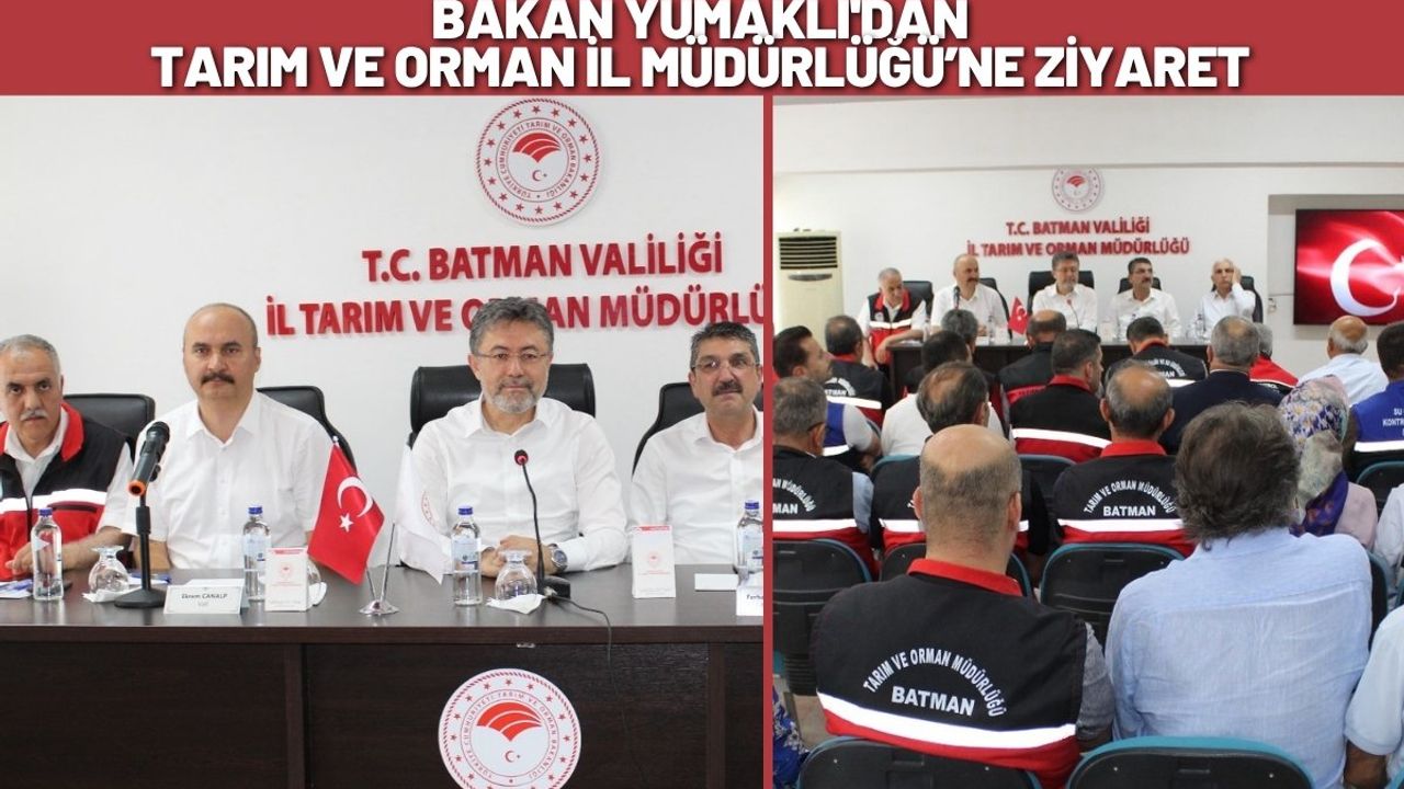 İl Müdürlüğü önünde İl Müdürü Mehmet Aydın tarafından karşılanan Bakan Yumaklı, kurum binasında Batman genelindeki tarımsal üretim, hayvancılık potansiyeli ve kırsal kalkınma projeleri hakkında detaylı bir brifing aldı. Yapılan sunumda ilin üretim kapasitesi, destek programları ve devam eden projeler detaylı şekilde ele alındı.