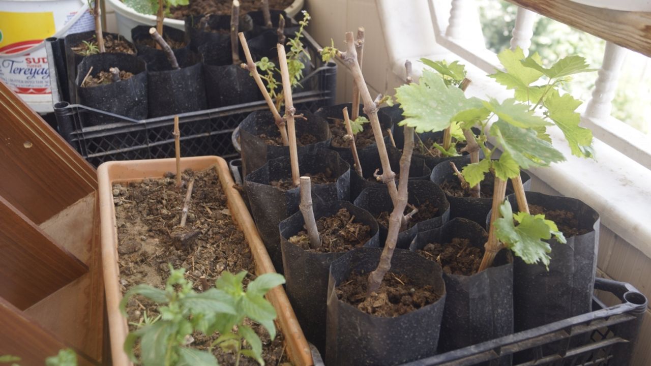 Balkonda fidanlar için uygun bir yer yaptığını ifade eden Aydın, 'Ufak fidanlar için balkonda bir yer yaptık. Yaptığımız yerde üzüm fidanları, Ceviz Fidanları ve bazen de fıstık fidanları ekiyoruz. Çıkan fidanları bir sene balkonda tuttuktan sonra köydeki tarlaya götürüp ekiyoruz. Böylece hem masraftan kaçıyoruz hem de fidanın kuruma riskini azaltıyoruz.' İfadelerini kullandı.
