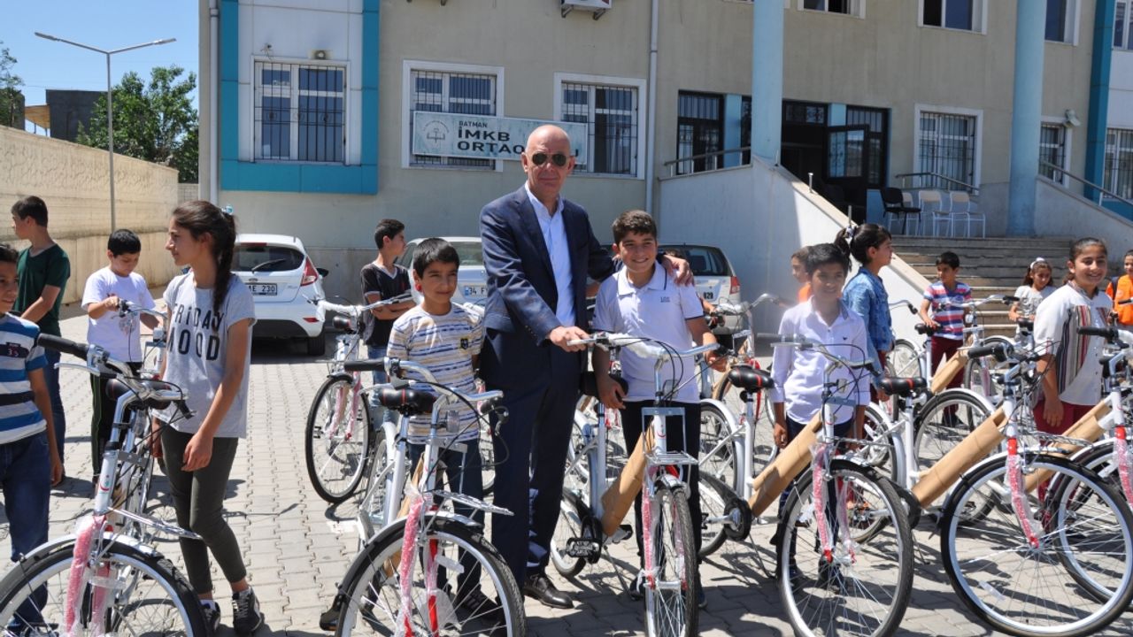 Bisiklet dağıtım töreninde başarılı olan öğrencileri tebrik eden Başkan Vekili AKSOY, Temel Öğretimden Orta Öğretime Geçiş Sınavı (TEOG)'nda başarılı olan öğrencilere hediyelerini dağıtırken öğrenciler karne ile birlikte Bayram ve başarı ödülü olarak bisiklet almaktan da büyük sevinç duydu.