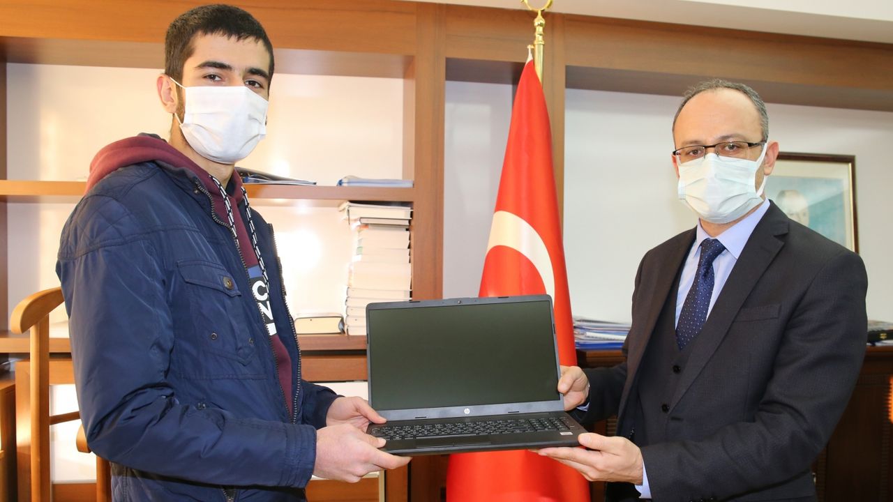 Tarhan ailesinin eğitim gören 8 öğrencisine eğitim desteği kapsamında dizüstü bilgisayar ve bir aylık ücretsiz internet hediye eden Başkan Yardımcısı Bilgili, başarılı öğrencilere eğitim ve öğretim hayatlarında başarılar dileyerek dizüstü bilgisayarları güle güle kullanmaları temennisinde bulundu. M. EMİN URAZ