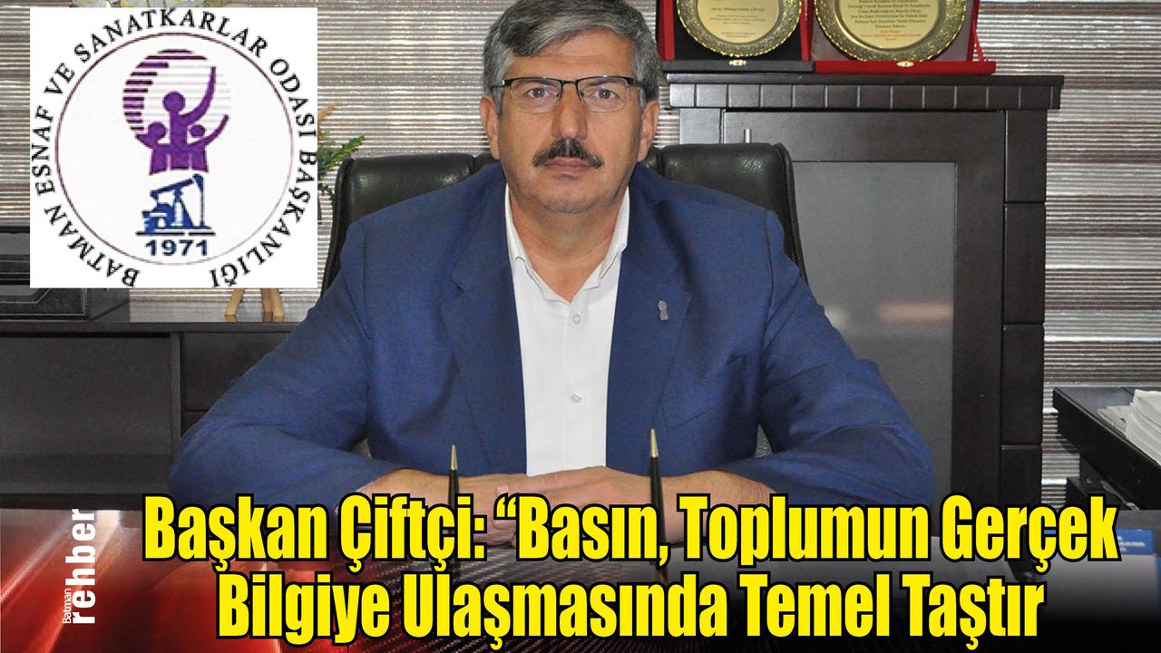 Basının, toplumun gerçek bilgiye ulaşmasında en önemli temel taşlarından biri olduğunu vurgulayan Başkan Çiftçi, “Toplumun doğru ve tarafsız bilgiye ulaşmasında, kamuoyunun bilinçlenmesinde ve halk ile kurumlar arasında köprü kurulmasında büyük rol üstlenen basın mensuplarımız, oldukça kutsal bir görevi yerine getirmektedir” dedi.