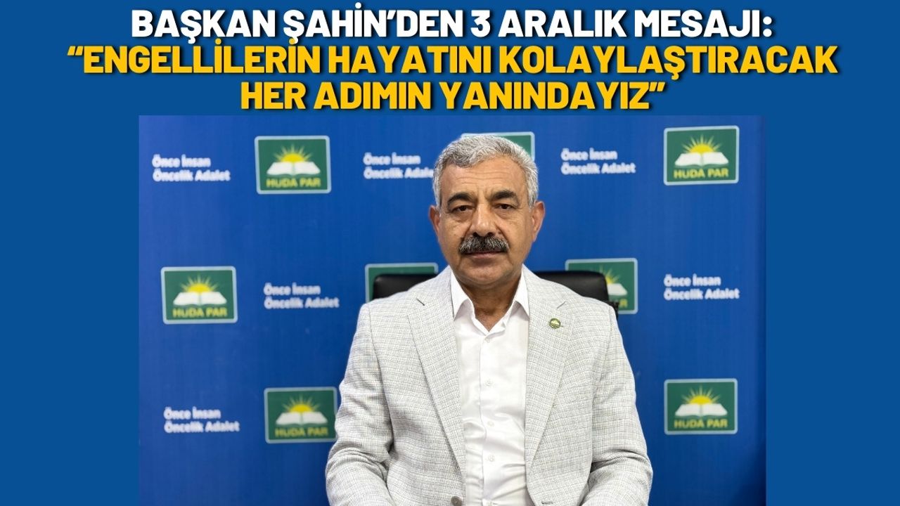 HÜDA PAR Batman İl Başkanı Davut Şahin, “3 Aralık Dünya Engelliler Günü” münasebetiyle yazılı bir açıklama yaptı. Mesajında engelli bireylerin toplumsal hayata katılımı, istihdamı ve karşılaştıkları zorlukların giderilmesi konularına değinen Şahin, kamu kurumlarına ve yerel yönetimlere duyarlılık çağrısında bulundu.