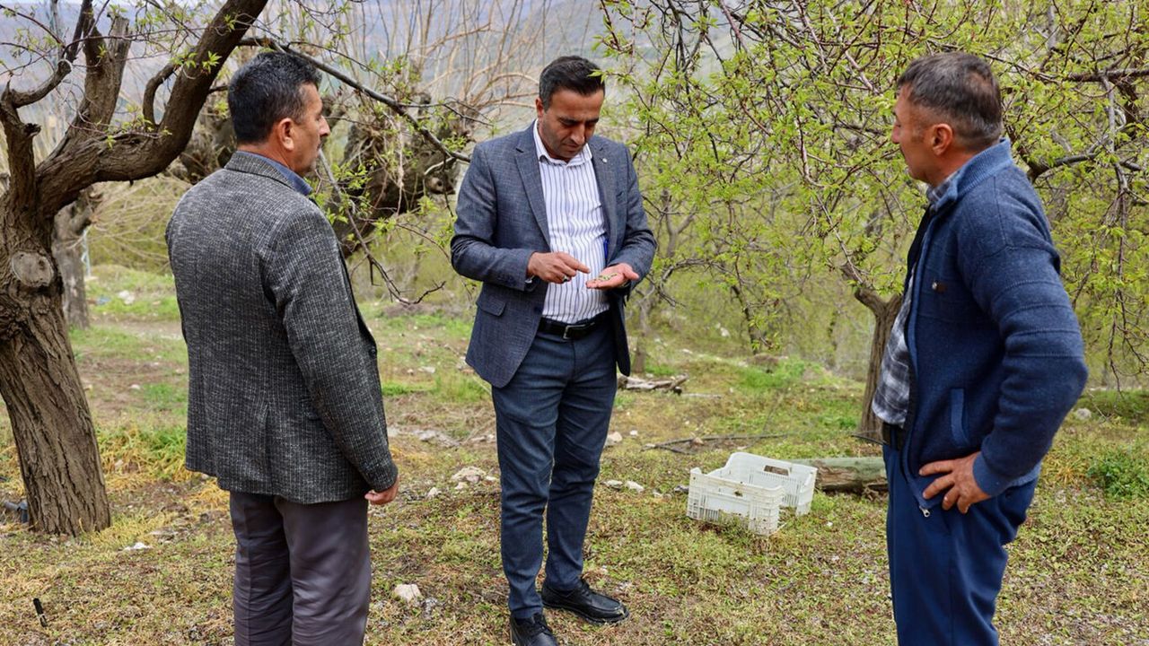 Mahallede zarar gören kayısı bahçelerinde incelemelerde bulunan heyet, üreticilerle bir araya gelerek yaşanan mağduriyet hakkında bilgi aldı. Dolu yağışının kayısı ağaçlarında oluşturduğu zararı yerinde değerlendiren Başkan Ulutaş, çiftçilerin sorunlarını dinledi.