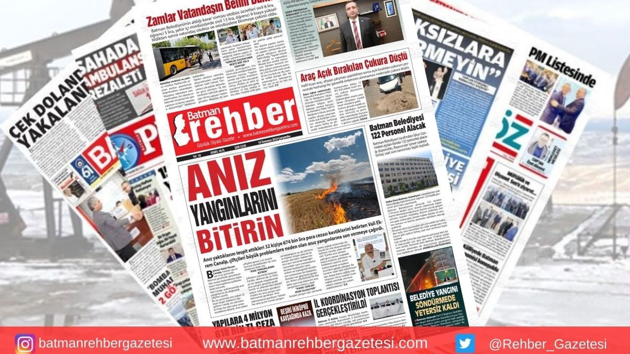 Gazetemiz Batman Rehber’in 10 Temmuz tarihli manşeti
