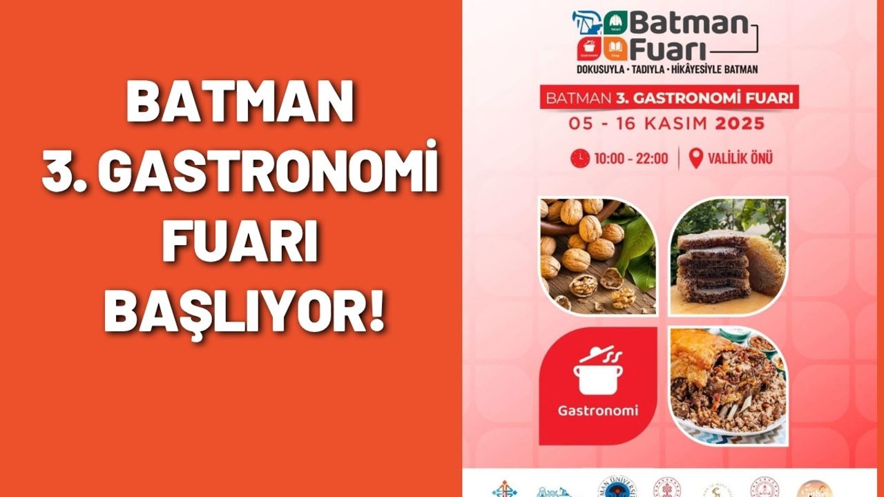 Batman Valiliği önünde 5–16 Kasım 2025 tarihleri arasında düzenlenecek Batman 3. Gastronomi Fuarı, kentin kültürel dokusunu yansıtan yöresel tatlarla birlikte Türkiye’nin dört bir yanından gelen lezzetleri buluşturacak.