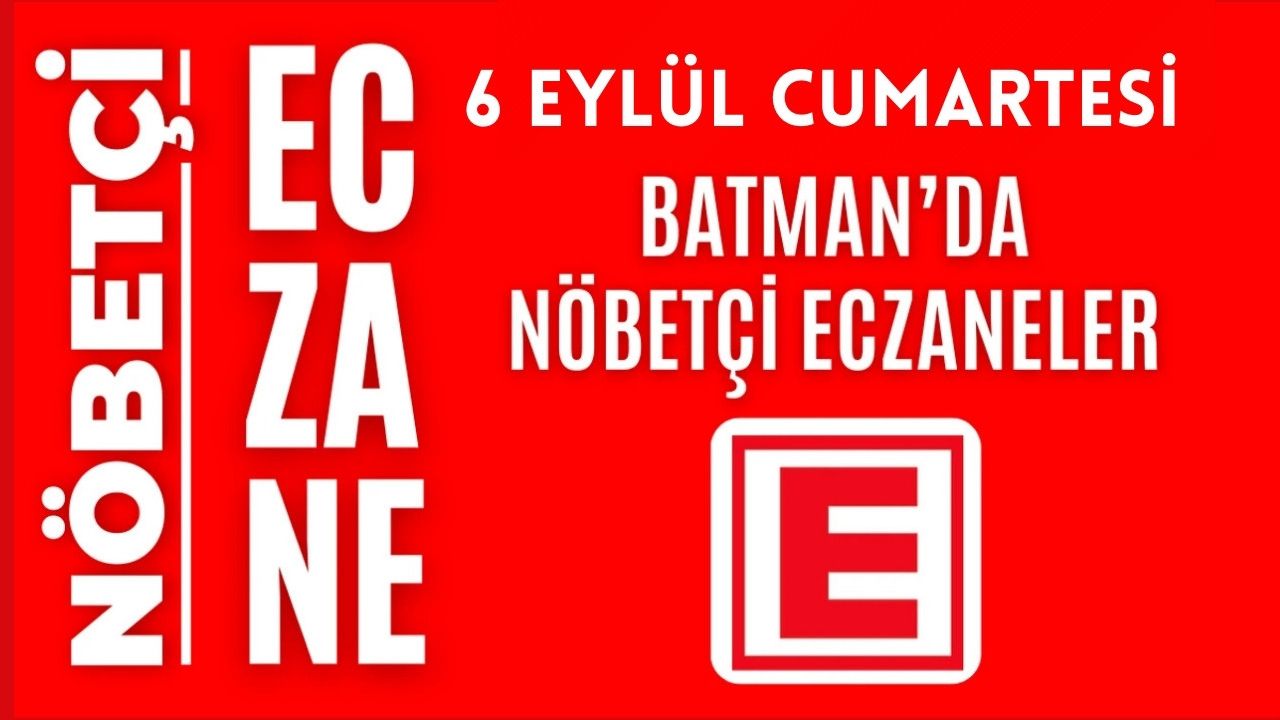 İşte Batman’da 6 Eylül Cumartesi günü açık olacak olan tüm nöbetçi eczanelerin isimleri, adresleri ve iletişim bilgileri…