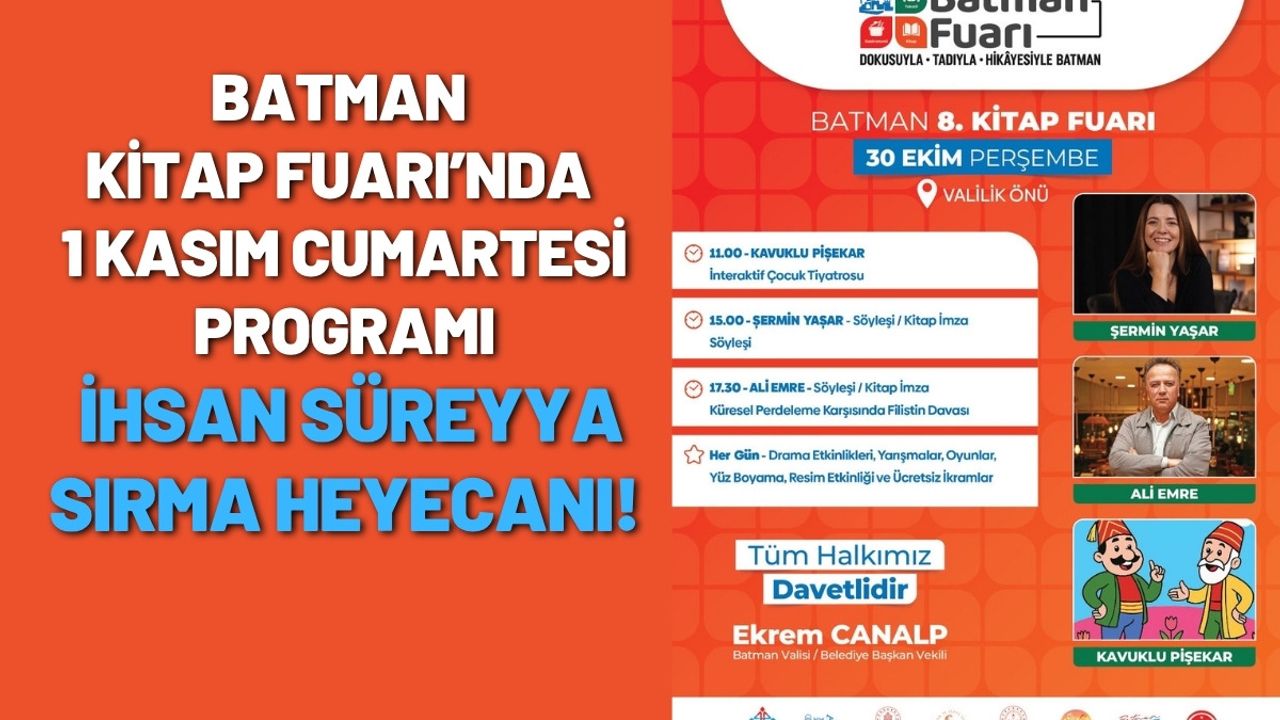 1 Kasım Cumartesi günü boyunca fuar alanında sadece yazar söyleşileri değil; çocuk etkinlikleri, kültürel yarışmalar ve ücretsiz ikramlar da ziyaretçileri bekliyor. Batmanlılar, hem kitap alışverişi yapma hem de yazarlarla doğrudan iletişim kurma fırsatı bulacak.