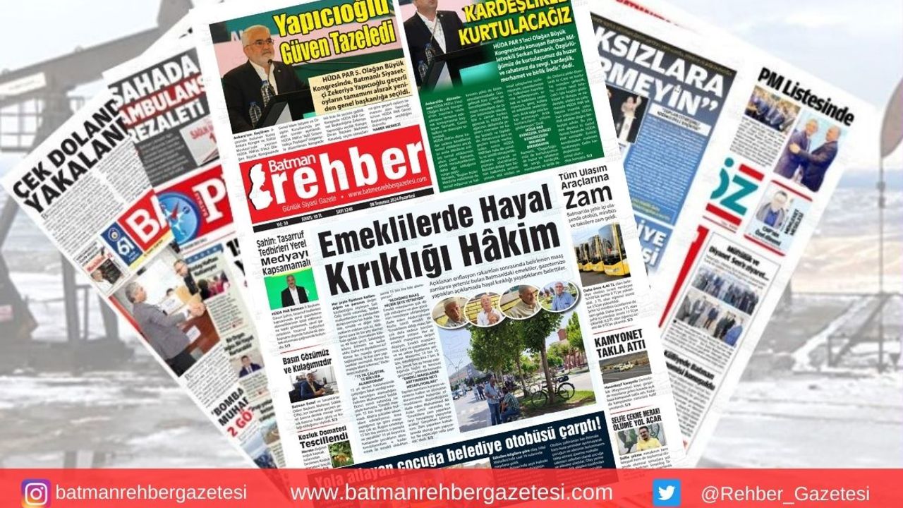 Gazetemiz Batman Rehber’in 8 Temmuz tarihli manşeti