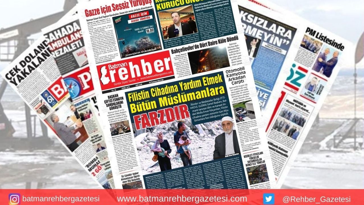 Gazetemiz Batman Rehber’in 9 Temmuz tarihli manşeti