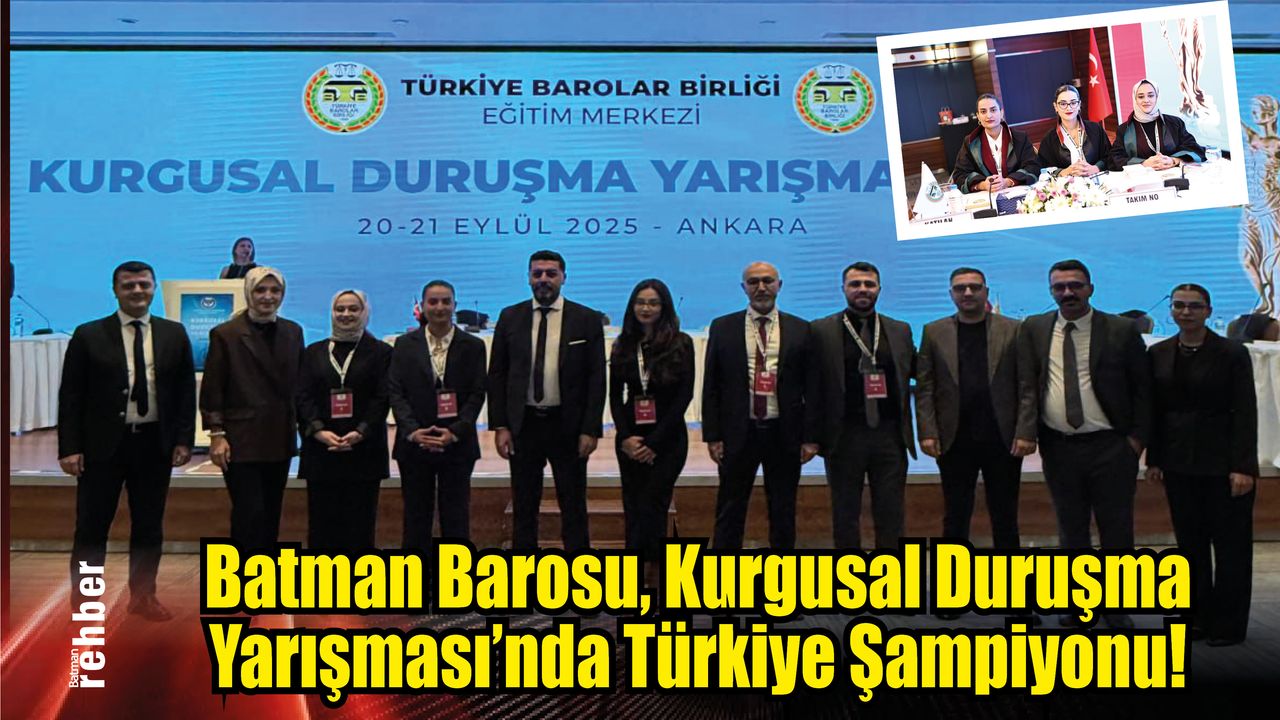 Batman Barosu, yayımladığı tebrik mesajında şampiyon stajyer avukatları, çalıştırıcıları ve emeği geçen herkesi kutlarken, finallere katılan tüm baro takımlarına ve ev sahipliği yapan Türkiye Barolar Birliği'ne teşekkürlerini iletti. Bu şampiyonluk, Batman Barosu'nun genç avukat adaylarının yetenek ve yetkinliklerini bir kez daha gözler önüne serdi.