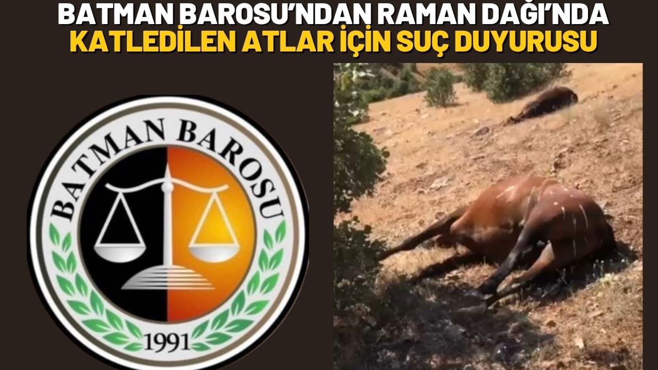 Kimliği henüz belirlenemeyen kişi ya da kişiler tarafından bazıları gebe ve yavrulu olan çok sayıda atın silahla öldürülmesi üzerine Batman Barosu, Batman Cumhuriyet Başsavcılığı’na suç duyurusunda bulundu.