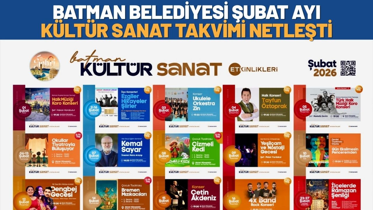 Kültür sanat etkinlikleri bu ay sadece şehir merkeziyle sınırlı kalmayarak ilçelere de taşınacak. 2-16 Şubat tarihleri arasında Beşiri, Kozluk, Gercüş, Sason ve Hasankeyf’te "Ezgiler Hikayeler Şiirler" başlığı altında ilçe konserleri gerçekleştirilecek. Ayın son haftasında (23-27 Şubat) ise yine ilçelerde düzenlenecek Ramazan Şenlikleri ile etkinlikler sona erecek. Organizasyon tarafından duyurulan tüm programlar vatandaşlara ücretsiz olarak sunulacak.