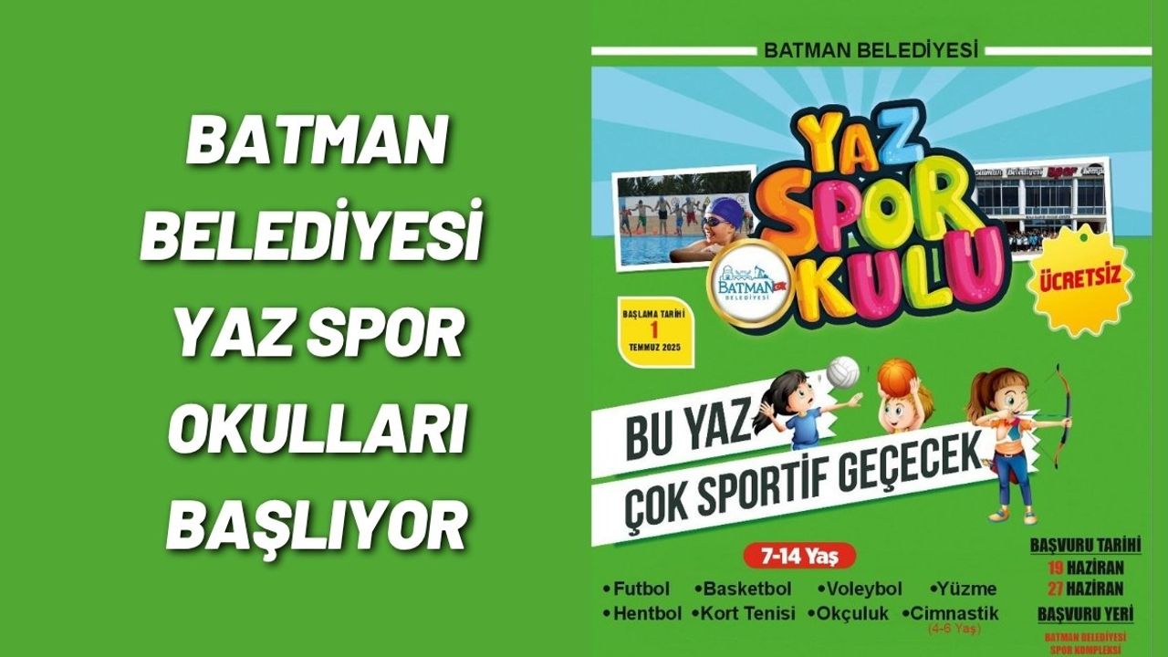1 Temmuz itibarıyla başlayacak olan Yaz Spor Okulları, Batmanlı çocuklara sporla iç içe, keyifli ve öğretici bir yaz sunacak. Aileler, çocuklarını aktif ve sağlıklı bir yaz dönemiyle buluşturmak için Belediye Spor Kompleksi’ne başvurarak kayıt işlemlerini tamamlayabilir.