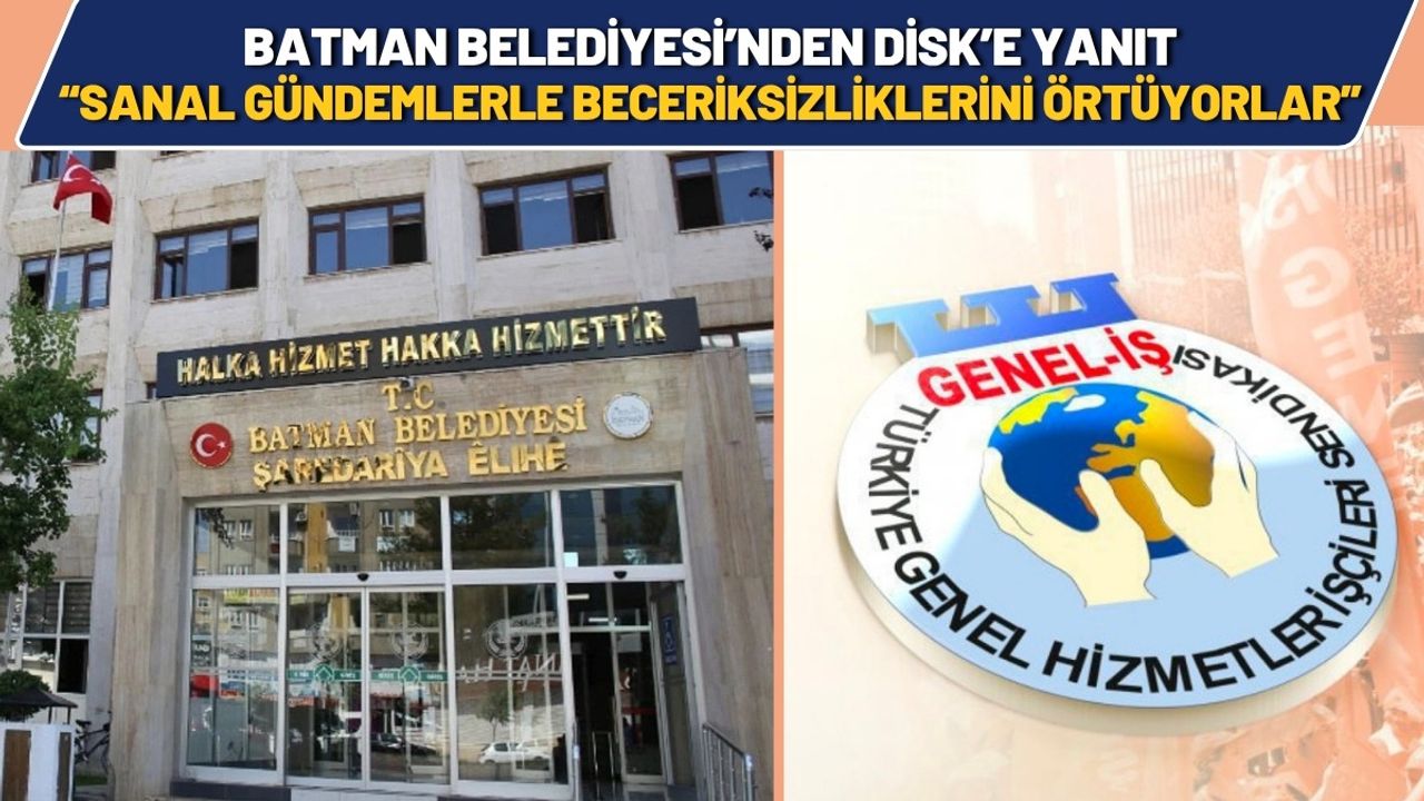 Batman Belediyesi, sendikanın aldığı basiretsiz kararları kamuoyu önünde mesnetsiz iddialarla örtmeye çalışmasının gerçekleri değiştiremeyeceğini belirtti. Belediye açıklamasında, “Görev ve sorumluluklarımız çerçevesinde tüm hizmet ve projelerimizi kararlılıkla sürdüreceğiz. Çalışma arkadaşlarımızın özlük haklarına ilişkin görüşmeler, yasal takvimi doğrultusunda yapılmaya devam edecektir.” denildi.