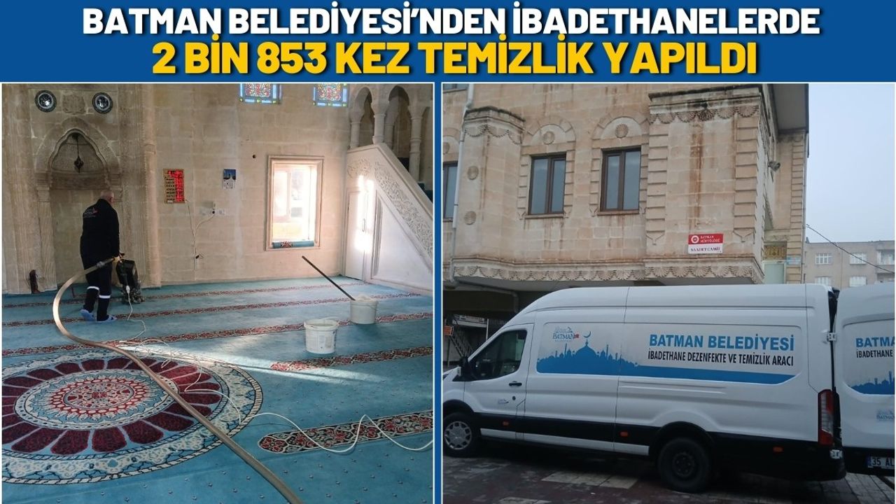 Batman Belediyesi, ibadethanelerin temizliğini ve hijyenini sağlamaya yönelik çalışmaların, belirlenen program dahilinde artarak devam edeceğini bildirdi.