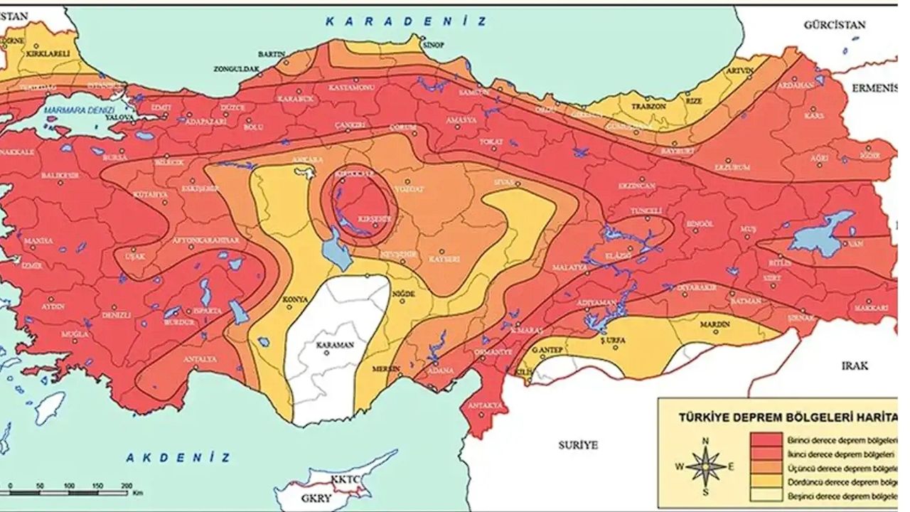Türkiye Deprem Haritasına göre deprem riskinin en az olduğu