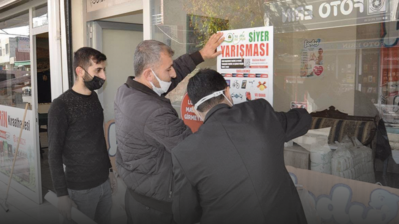 2022 Siyer Yarışması için esnafı gezip yarışma afişleriastıklarını belirten Aslan, "Ziyaret ettiğimiz iş yerlerine yarışmaafişlerini asıp esnafımıza kitaplarımızı takdim ettik. Gerçekleştirdiğimizziyaretlerde esnafımıza siyer yarışması için müşterilerini, çevresini veailesini Siyer Yarışması'na katılmaları yönünde telkin etmeleri konusundabilgilendirdik. Esnafımız ziyaretimizi gayet iyi karşılayıp afişlerimizi işyerlerini astılar." ifadelerini kullandı.