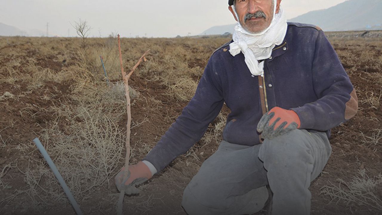 Tarlasına fıstık ağacı ektiğini vurgulayan bir diğer çiftçi Süleyman Zengin, “İki yıl önce ektiğimiz fıstık tarlasını şu anda sürüyorum. İlk fıstık ektiğimizde önce tarlayı pulluk ile sürdük, sonrada tek tek fıstık fidanlarımızı ektik. İlk yıl tarlayı üç defa suladık. İlk başlarda ne kadar düzenli ve sık sulama yapılırsa o kadar toprak için iyidir.” dedi.