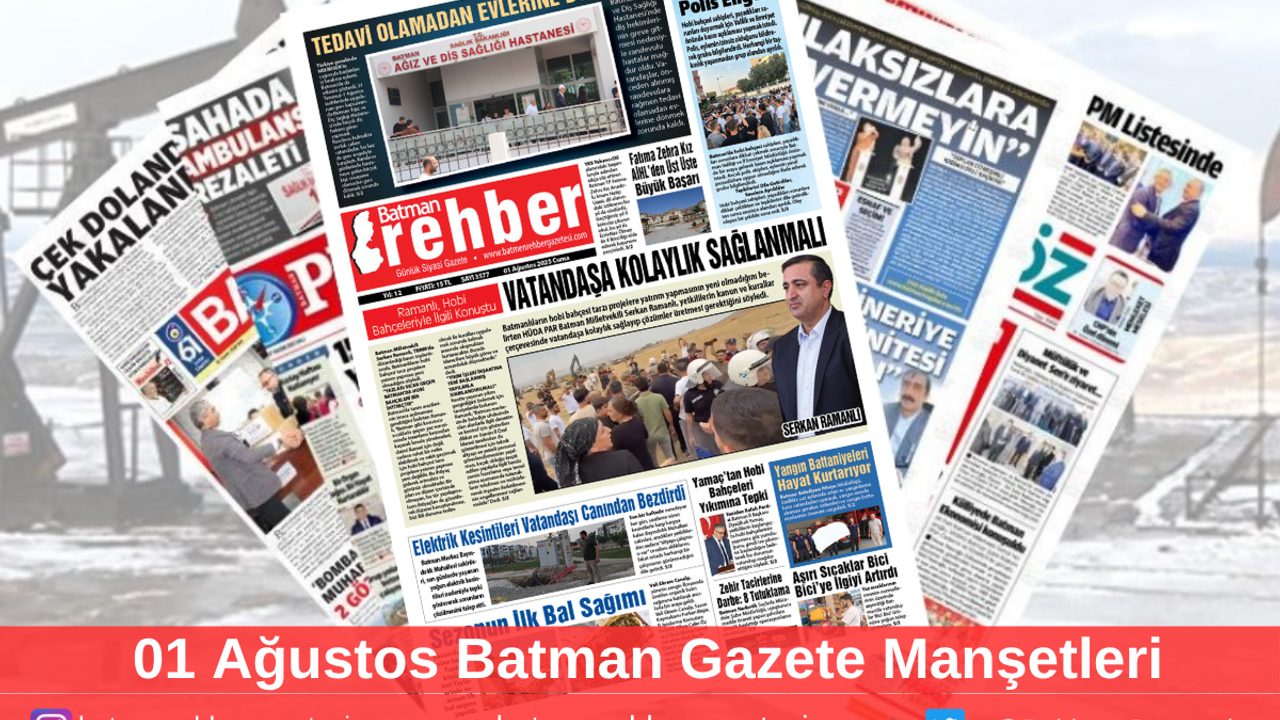 Peki, Batman’da yayınlanan yerel gazetelerin bugün birinci sayfalarında hangi haberler yer buldu? İşte 1 Ağustos Cuma günü yayınlanan gazetelerin birinci sayfaları…