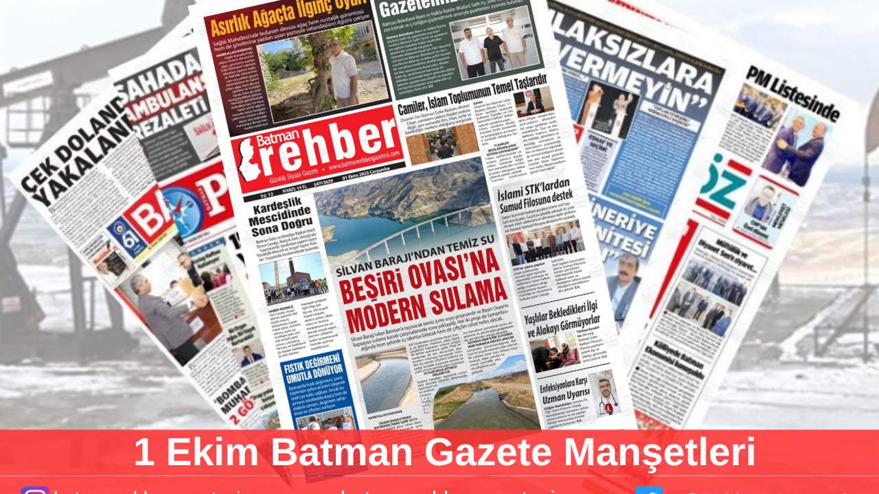 İşte 1 Ekim Çarşamba Batman Gazete Manşetleri…