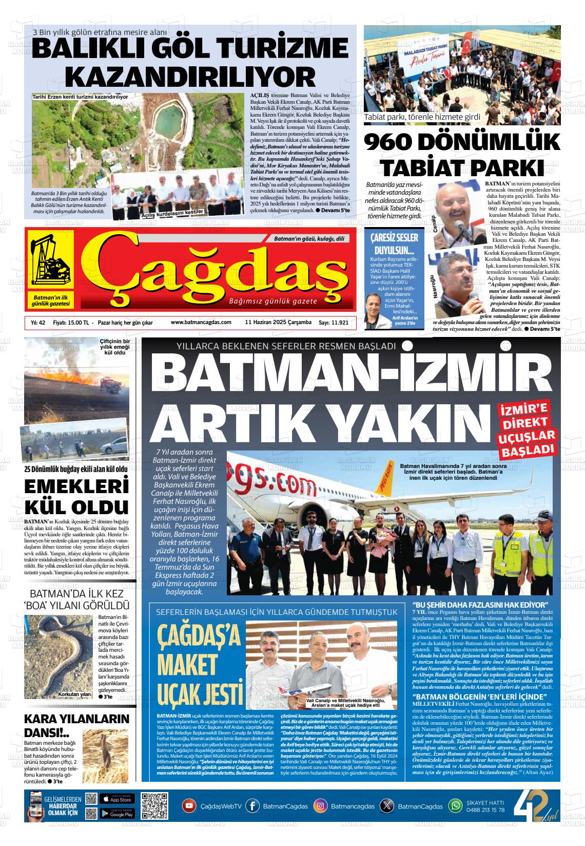 Batman Çağdaş Gazetesi’nin 11 Haziran tarihli manşeti