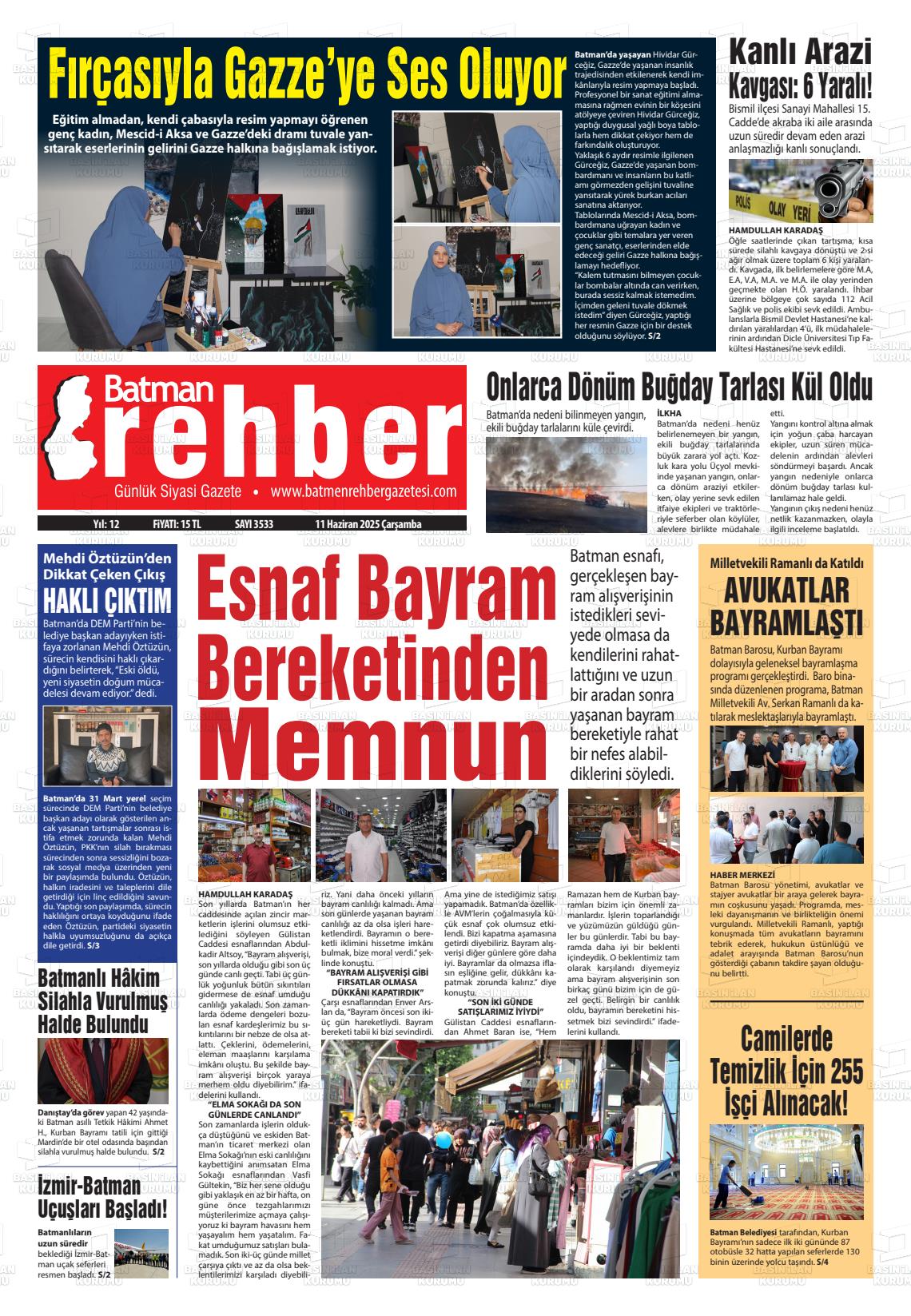 Gazetemiz Batman Rehber’in 11 Haziran tarihli manşeti