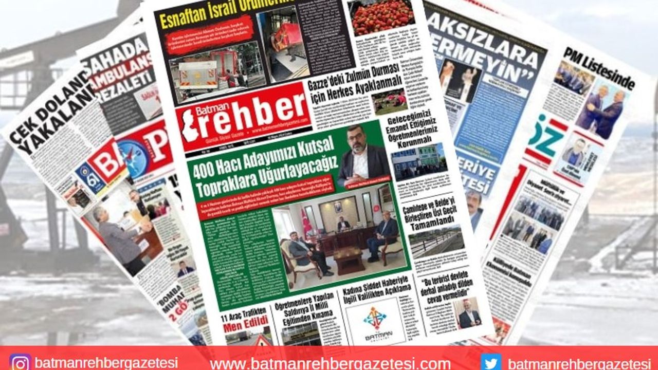 Gazetemiz Batman Rehber’in 11 Mayıs tarihli manşeti