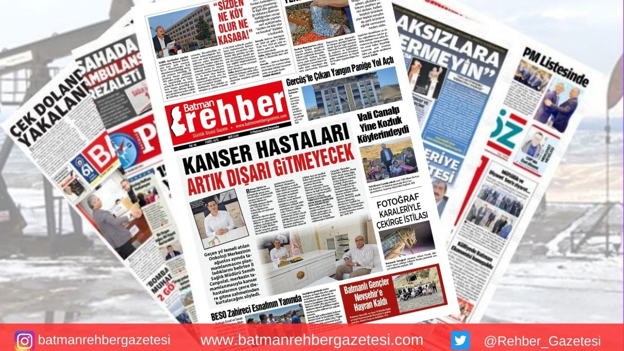 Gazetemiz Batman Rehber’in 13 Haziran tarihli manşeti