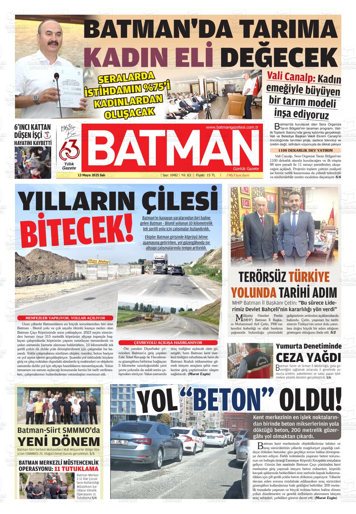 Batman Gazetesi’nin 13 Mayıs tarihli manşeti