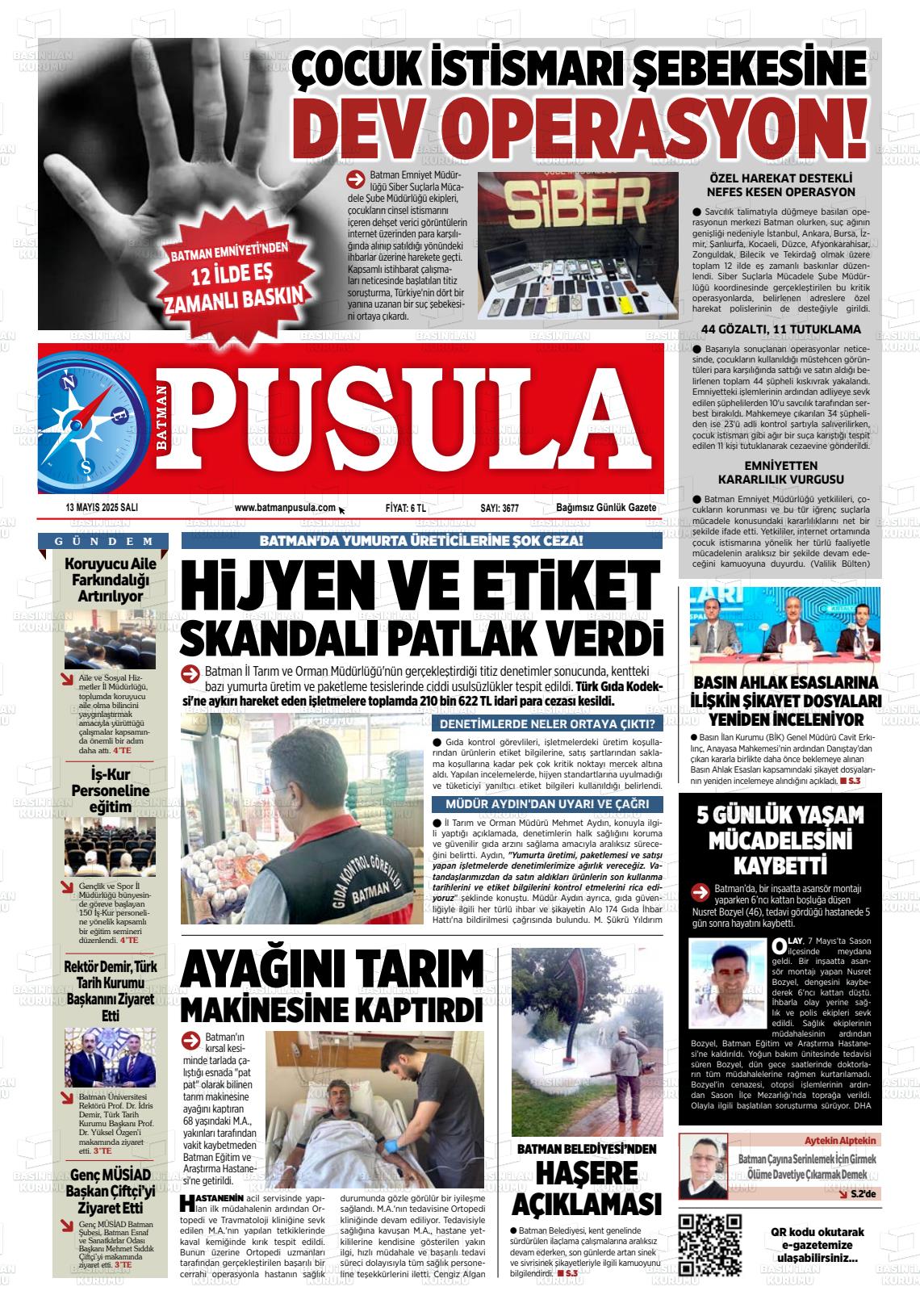 Batman Pusula Gazetesi’nin 13 Mayıs tarihli manşeti