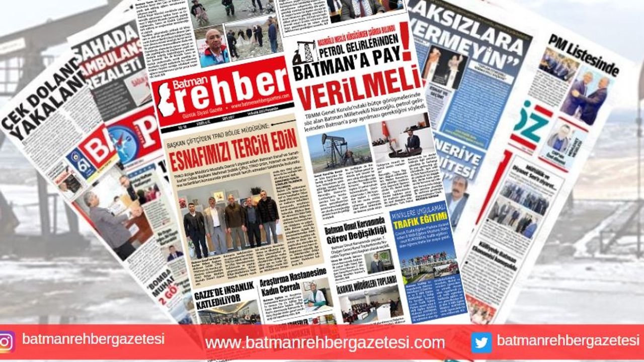 Batman Rehber Gazetesi’nin 14 Aralık 2023 tarihli manşeti;