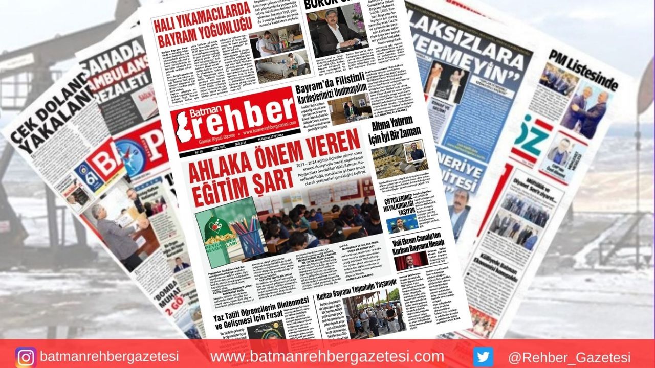 Gazetemiz Batman Rehber’in 14 Haziran tarihli manşeti