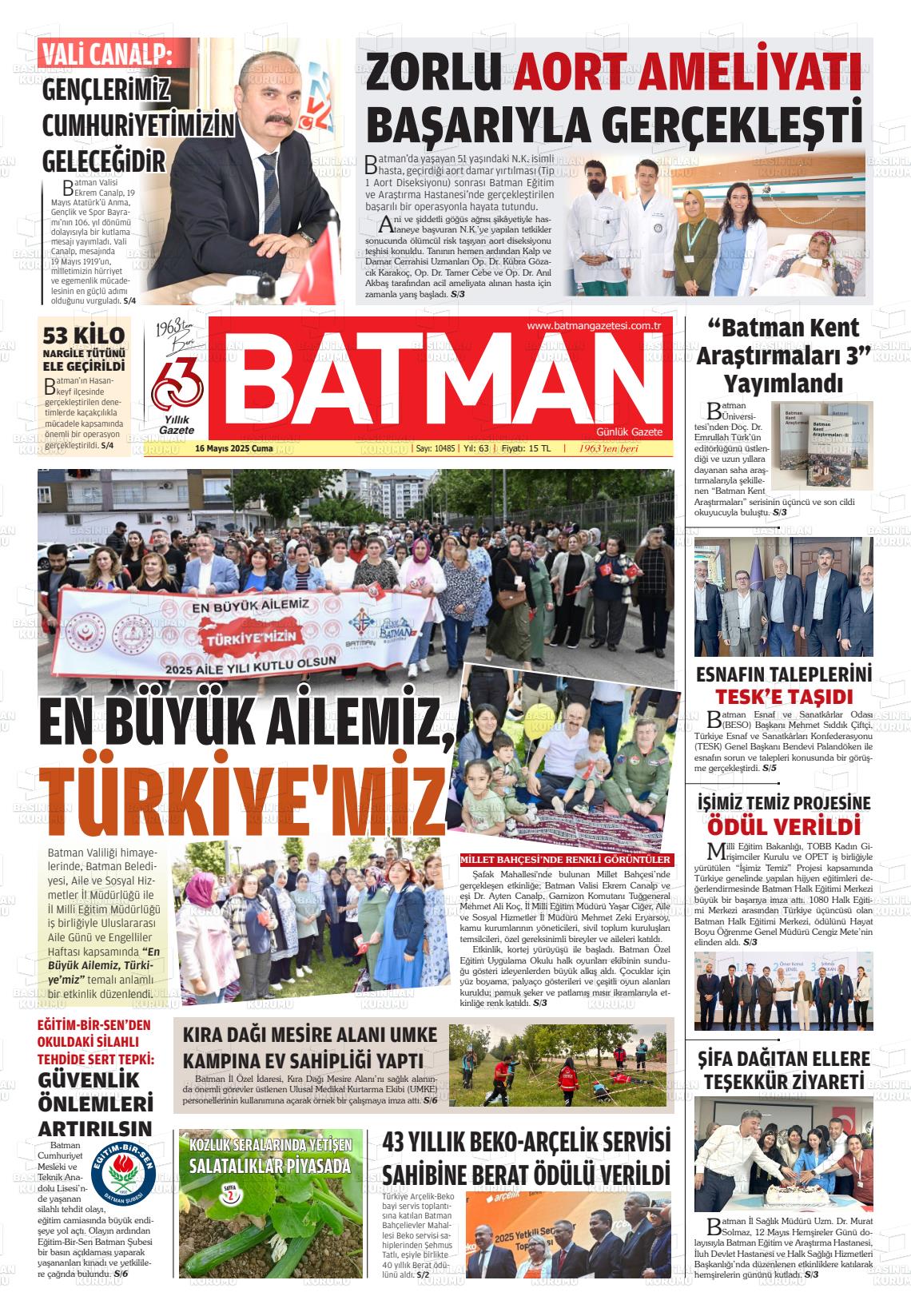 Batman Gazetesi’nin 16 Mayıs tarihli manşeti