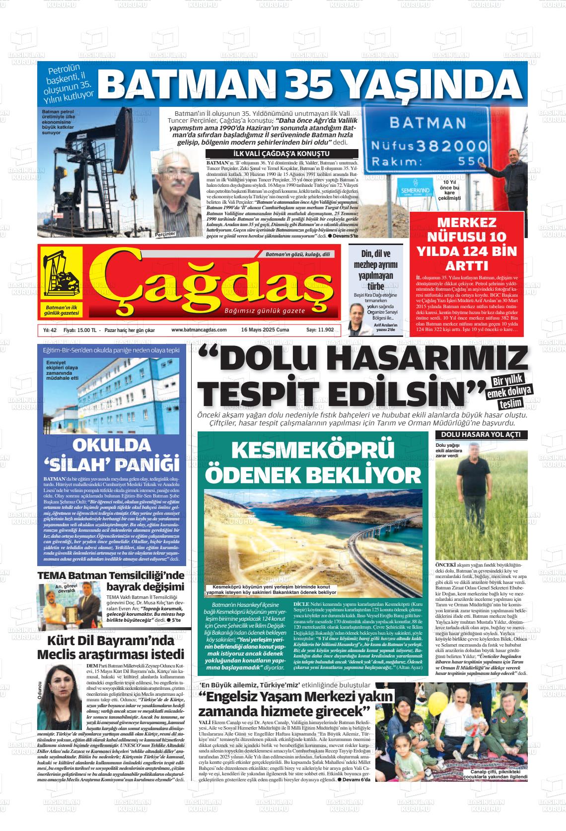 Batman Çağdaş Gazetesi’nin 16 Mayıs tarihli manşeti
