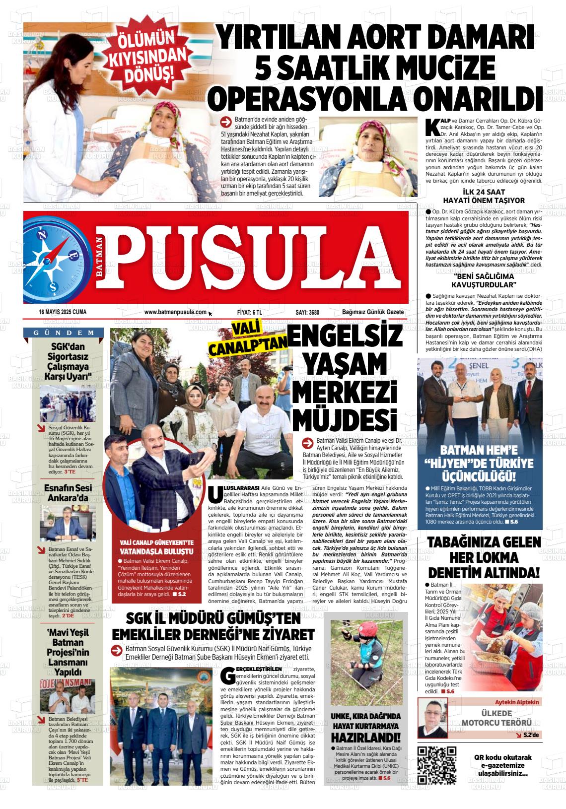 Batman Pusula Gazetesi’nin 16 Mayıs tarihli manşeti
