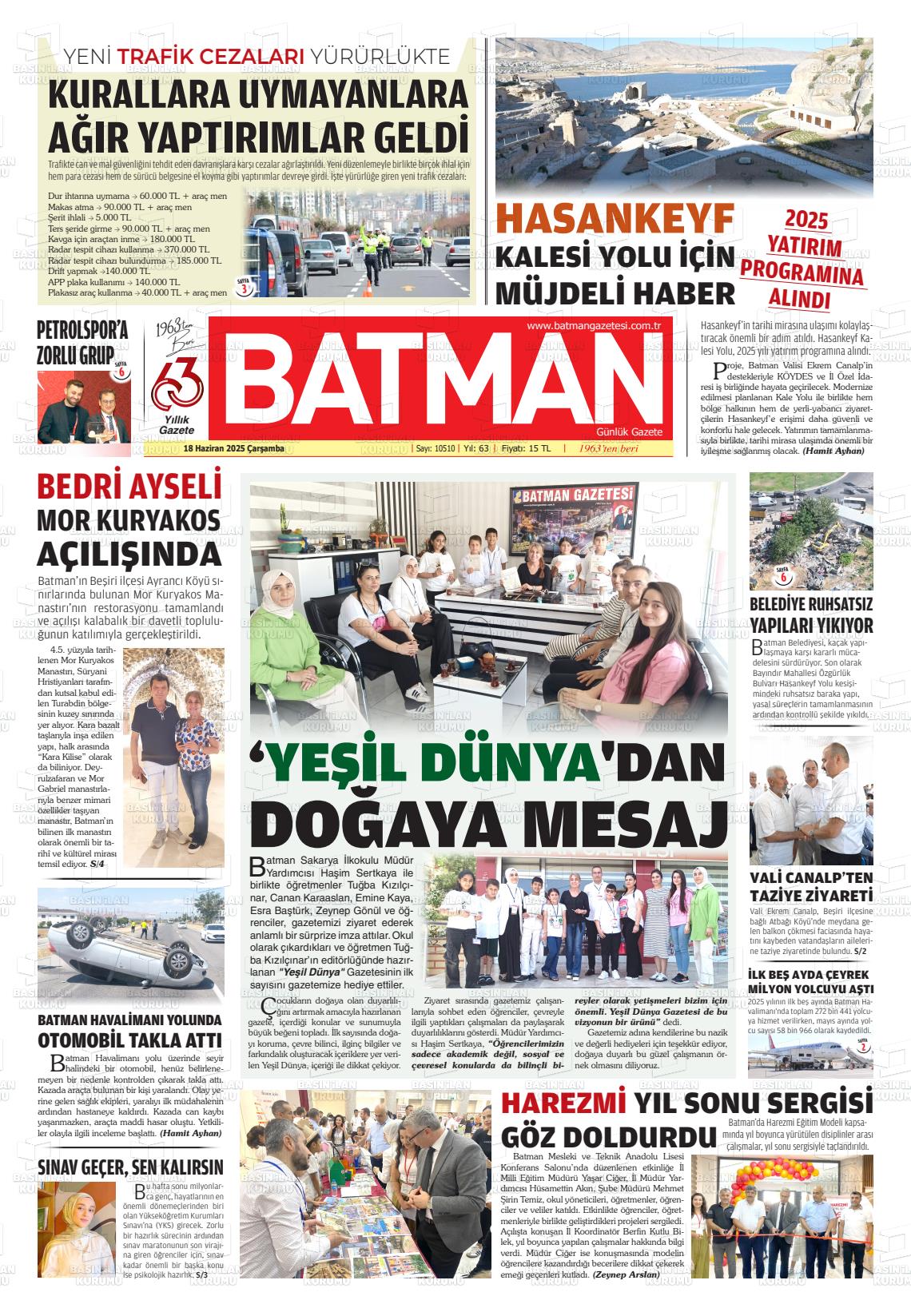 Peki, Batman’da yayınlanan yerel gazetelerin bugün birinci sayfalarında hangi haberler yer buldu? İşte 18 Haziran Çarşamba günü yayınlanan gazetelerin birinci sayfaları…