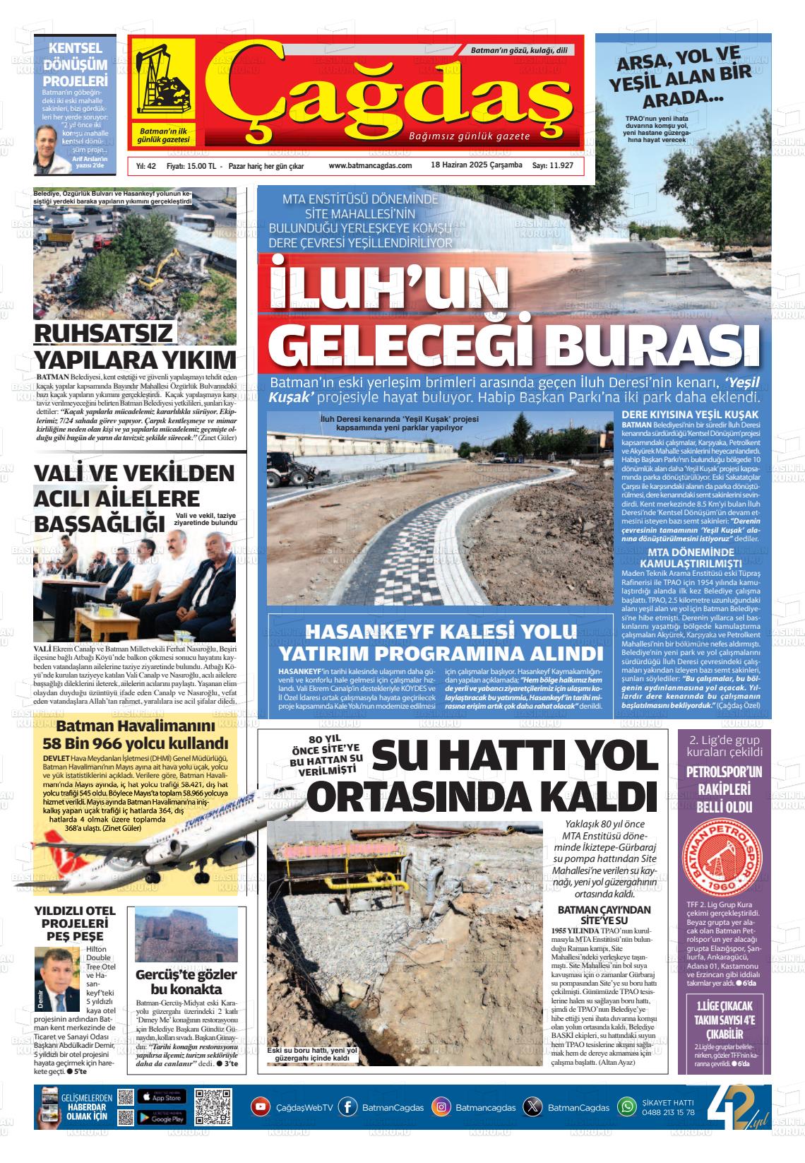 Batman Çağdaş Gazetesi’nin 18 Haziran tarihli manşeti