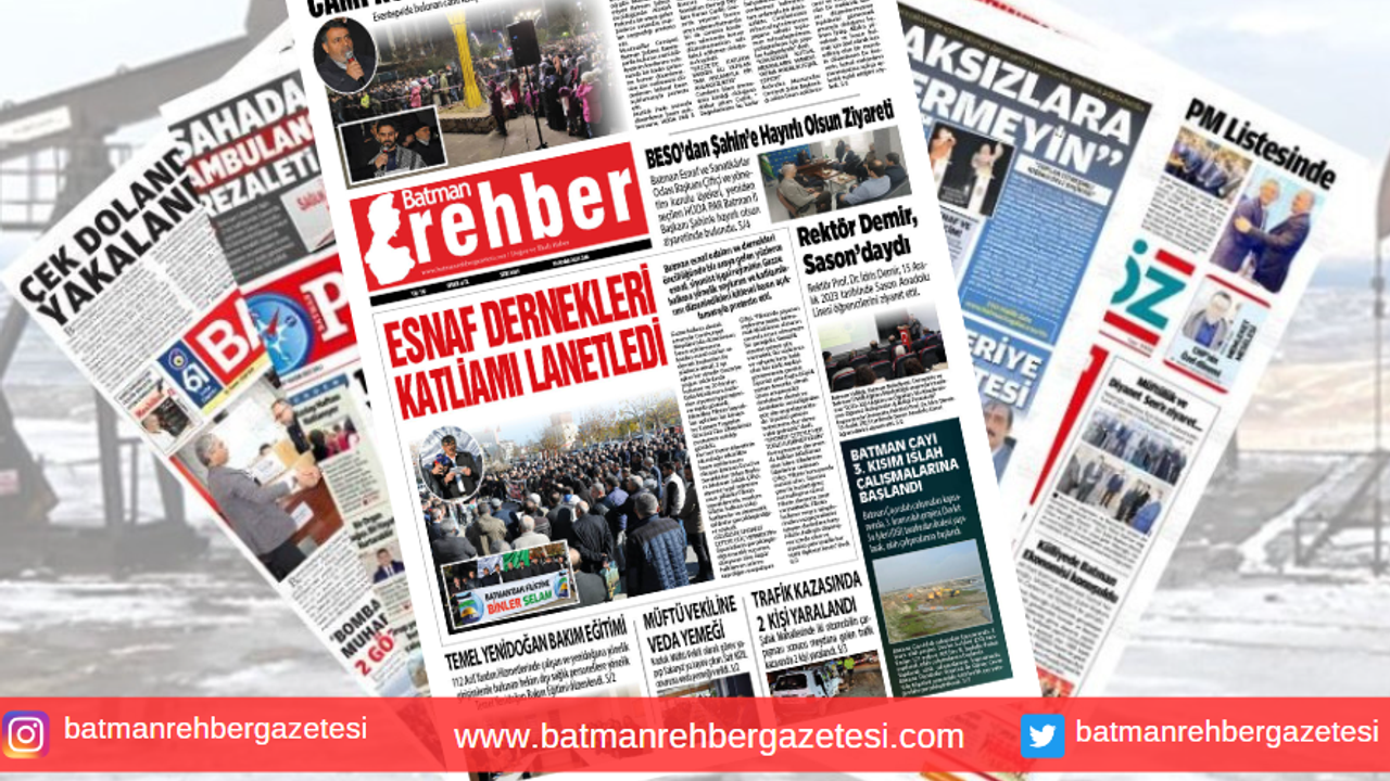 Batman Rehber Gazetesi’nin 19 Aralık 2023 tarihli manşeti;