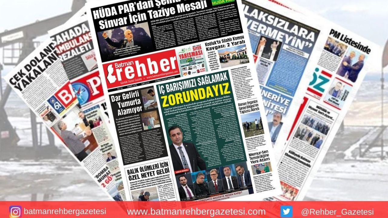Gazetemiz Batman Rehber’in 19 Ekim tarihli manşeti