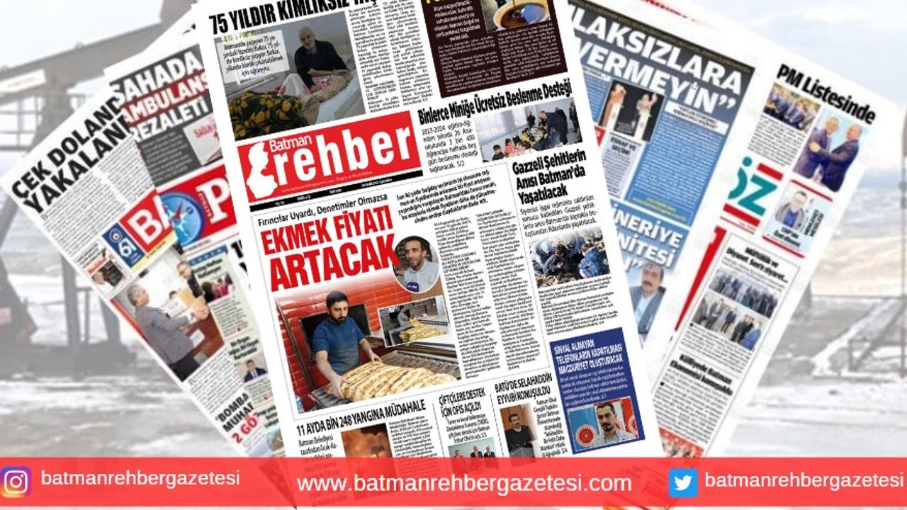 Batman Rehber Gazetesi’nin 20 Aralık 2023 tarihli manşeti;