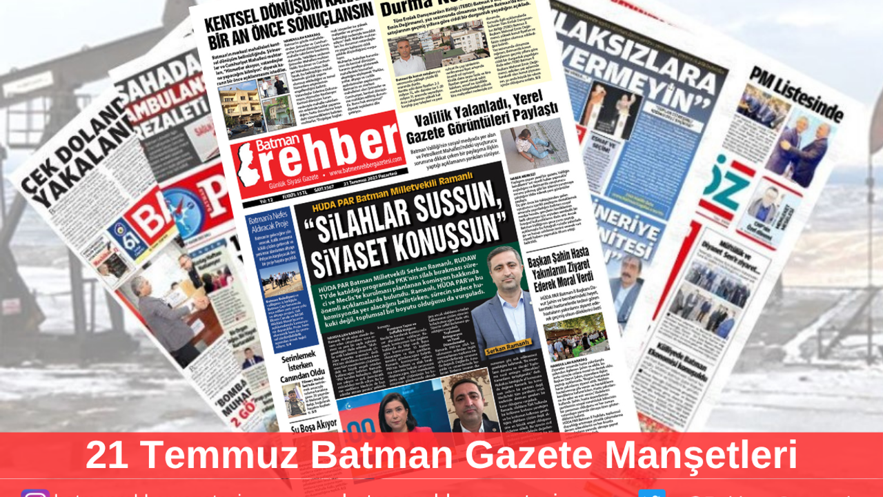 Peki, Batman ve ilçelerinde yayınlanan yerel gazetelerin bugün birinci sayfalarında hangi haberler yer buldu? İşte 21 Temmuz Pazartesi günü yayınlanan gazetelerin birinci sayfaları…