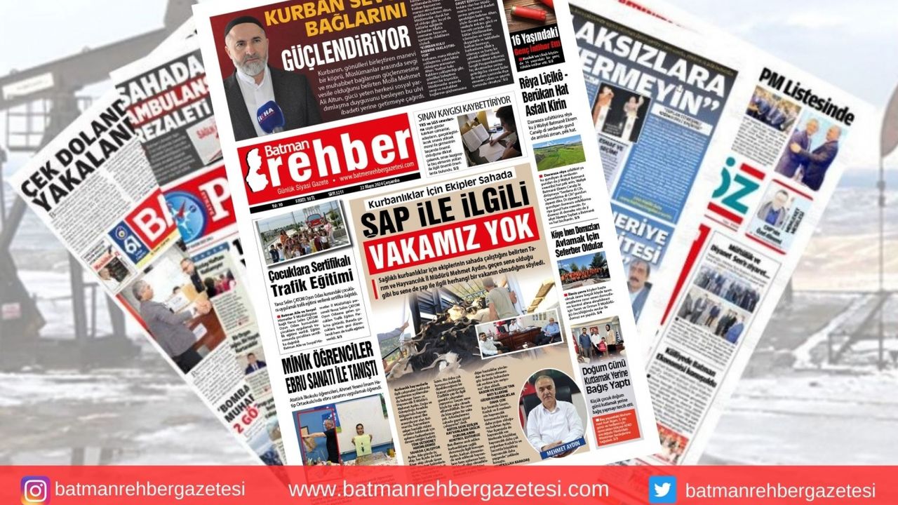 Gazetemiz Batman Rehber’in 22 Mayıs tarihli manşeti